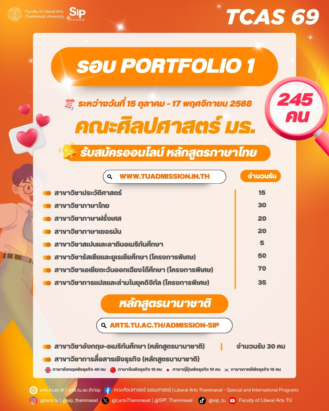 2. ข้อมูลการรับเข้า TCAS 69 สำหรับโครงการปกติและโครงการพิเศษ หลักสูตรภาษาไทย